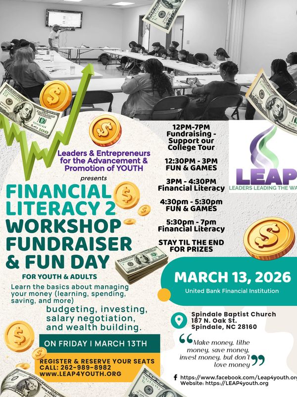 Leaders & Entrepreneurs for the advancement and Promotion of Youth (LEAP) is a non-profit leadership and development program for youth ages 9 - 17 or grades 4 - 12. We work with youth to provide access to leadership opportunities as entrepreneurs, in businesses, the arts and the community. We seek young minds that may not always fit the mode of athletes, but have skills they want to improve upon that will impact their life decisions. We seek to unlock the potential of youth all over Rutherford County and we hope that you be a part of these fantastic opportunities.